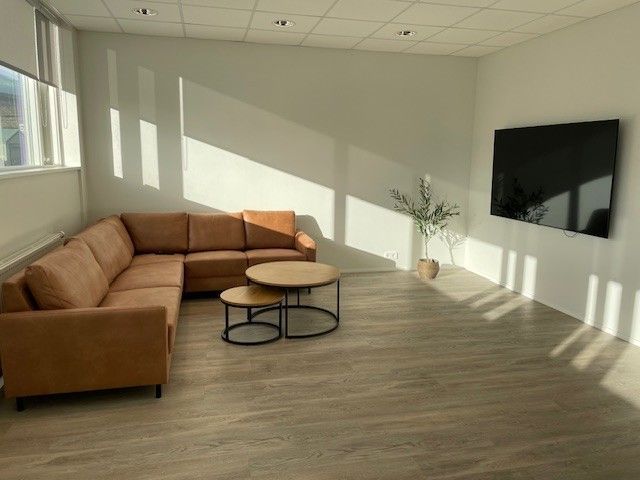 Rýmið er hannað með vinnu og samskipti í huga – rólegt, bjart og þægilegt umhverfi þar sem auðvelt er að vinna ótruflað.